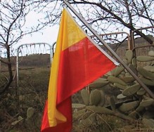 La bandera como objeto saturado de referencias y liturgias, como elemento itinerante que ensaya encontrar un sitio donde plantarse. En esta ocasión una bandera que recoge un estado social y psicológico ambiguo y dudoso. Un trapo con colores que representan –hipotéticamente- un colectivo reunido entorno de una práctica común que, si se quiere, por decadente, parece haber perdido su encaje en el mundo contemporáneo sobreinformado, tecnológico y temeroso de reconocerse en su pasado reciente.